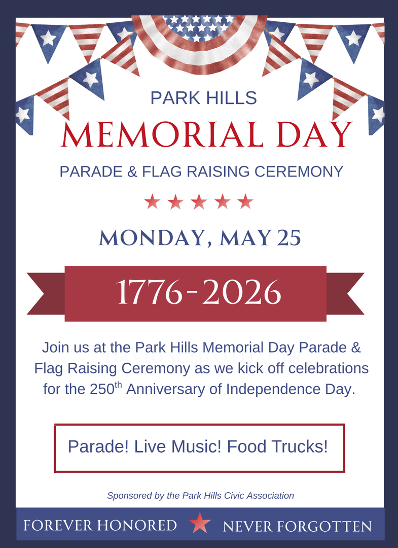 leadership to the City of Park Hills, David Schlothauer has been named as the 2025 Grand Marshal and will be recognized during the 2025 Parade and Flag Raising Ceremony.